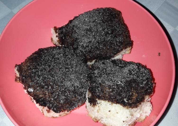 - Espolvorear con harina, luego pincelar con huevo, esparcir la mezcla de azúcar negro con harina por encima que cubra bien. A mi me gusta abundante jejeje. Dejar leudar y hornear por 15/20 min en horno moderado. Listo!!! 👏👏.